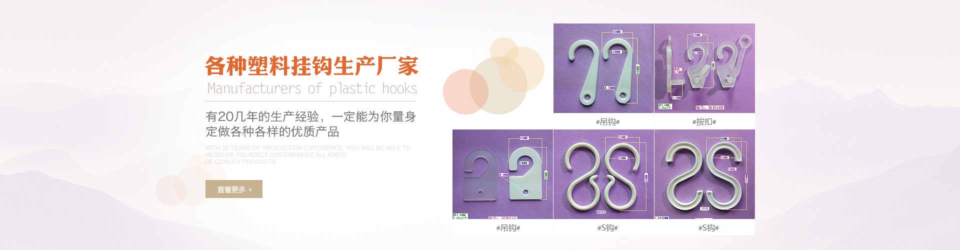 是一家生產塑料、塑膠和尼龍制品的獨資企業,自設模房和設計部、七臺注塑機,有十幾年的生產經驗,一定能為你量身定做各種各種樣的優質產品。 產品展示盒,商品展示架,展示柜,紙箱,紙盒上用到的塑料/塑膠/尼龍掛勾/鉤,材料:PP,ABS,尼龍,POM工程料、塑料掛勾/鉤,塑膠掛勾/鉤,勾,鉤,膠勾/鉤,掛臂,掛條,U形,F形,丁字形,S形,有槽,光身,有牙,扁形,兩腳,圓底各種各樣塑料/膠掛鉤/勾、禮品盒,商品盒,彩盒上用的塑料手挽,手提把,手提扣,手揪,把手.....